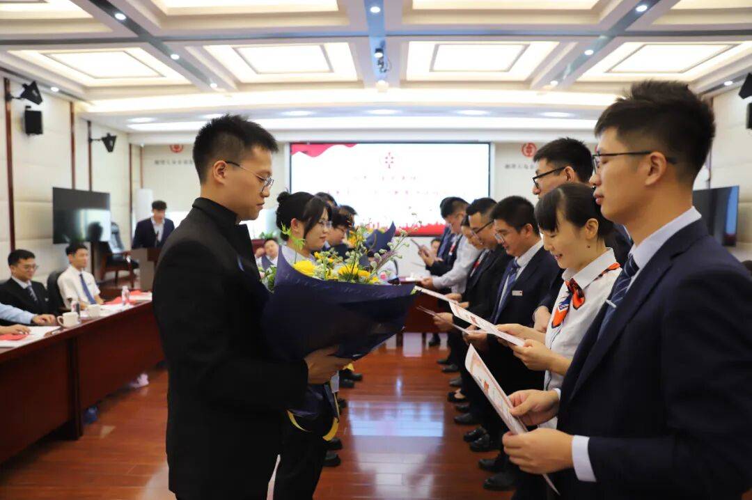 师徒结对仪式将活动现场推向高潮。新员工向导师深深鞠躬,并双手奉上拜师帖,表达拜师诚意;导师则回赠鲜花,象征着未来师徒同心、教学相长的美好约定。这一鞠一赠之间,不仅是技艺的传授,更是农信人“传帮带”精神与“家文化”的生动延续。