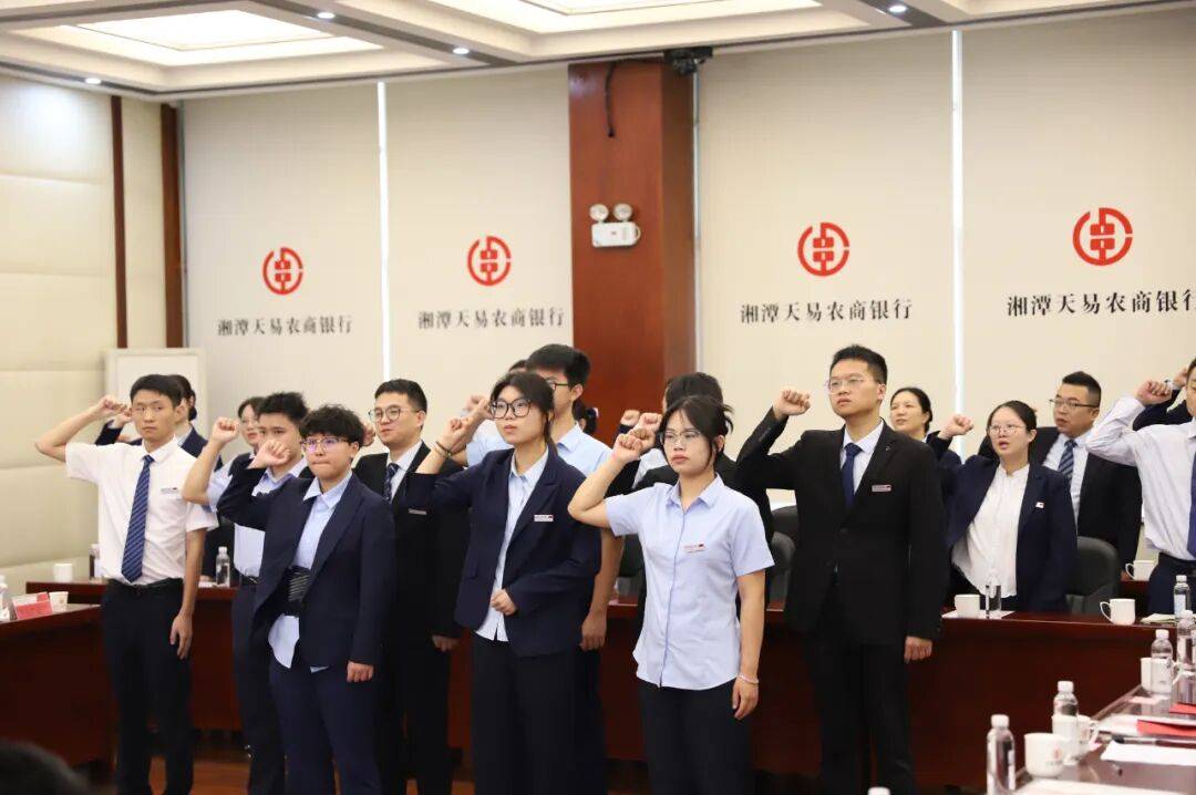 仪式在热情洋溢的氛围中拉开帷幕。10名新员工依次作自我介绍,并分享了各自的成长经历与职业憧憬,展现了新一代天易人昂扬的精神风貌。随后的授牌环节寓意深远,总行领导为新员工郑重佩戴工号牌并赠送寄语卡片。