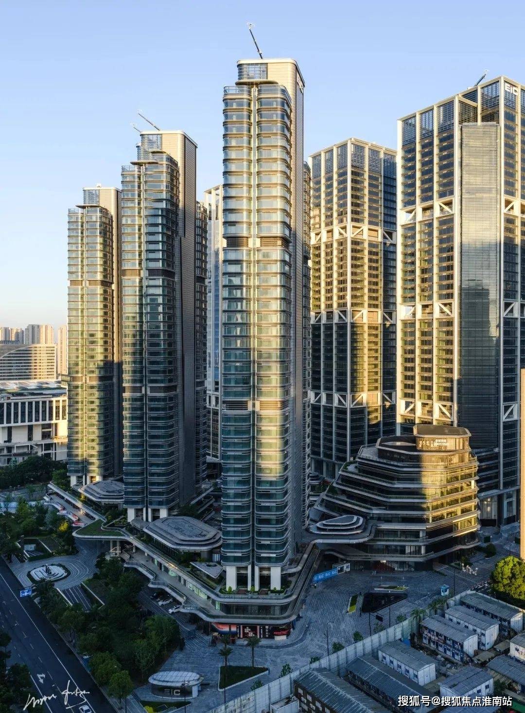项目由7栋最高约200米的建筑组成,总建筑面积约50万㎡,涵盖了摩天楼宇集群、互联网总部IT&Mall、国际潮流商业街区等多种业态。整体设计由英国高技派大师福斯特的Foster+Partners操刀,景观设计由AECOM、室内设计由HBA、照明设计由BPI共同完成,确保每一个细节都达到“世界级地标”的标准。